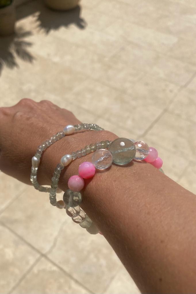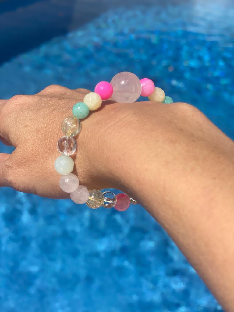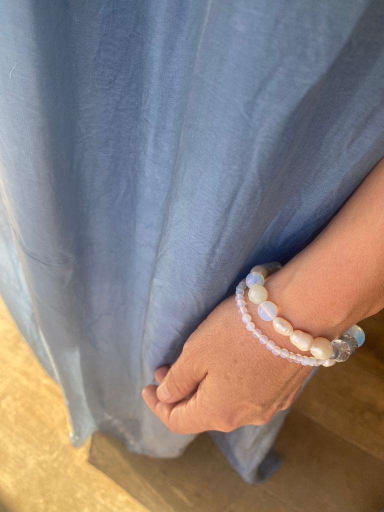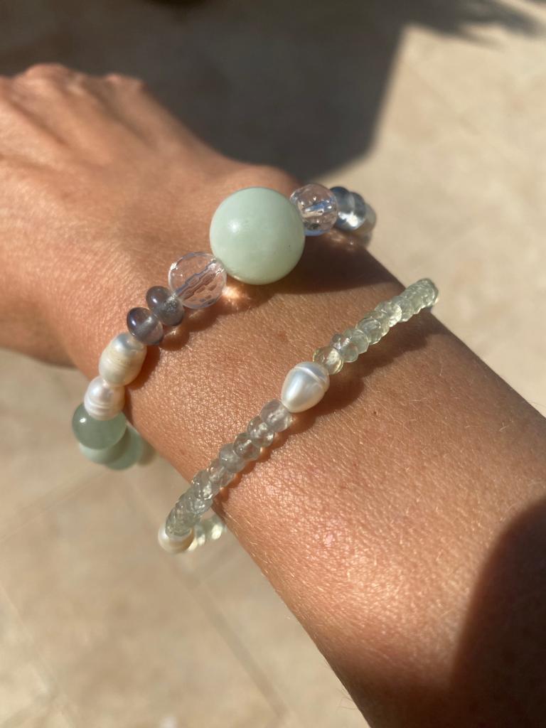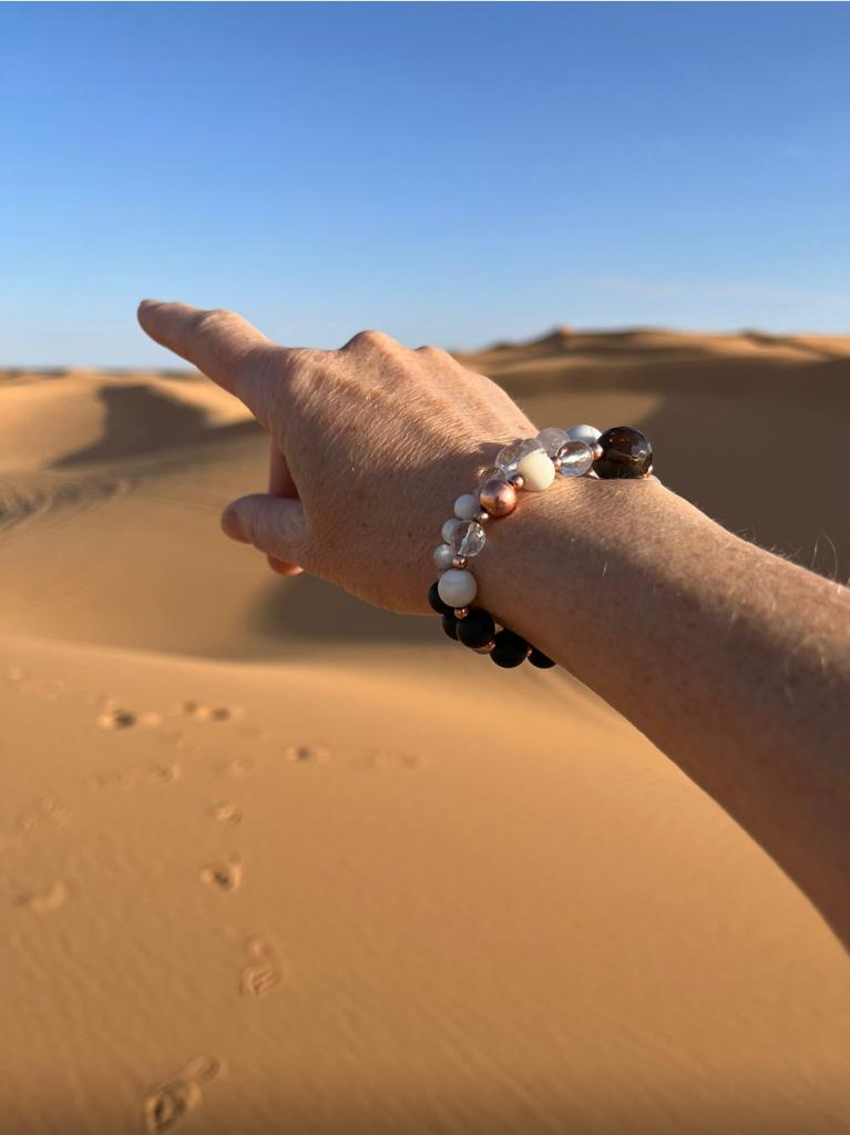 Since ancient times, bracelets have been revered for their ability to provide not only physical adornment but also spiritual, mental, and physical guidance, healing, and protection. The circular shape of a bracelet holds deep symbolism, representing the eternal cycle of life and interconnectedness. The gentle pressure of the crystals against your pulse points has a healing and grounding effect.