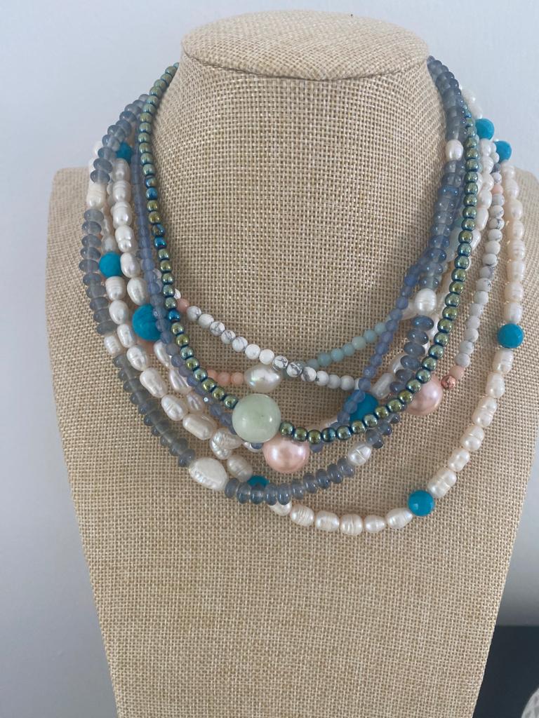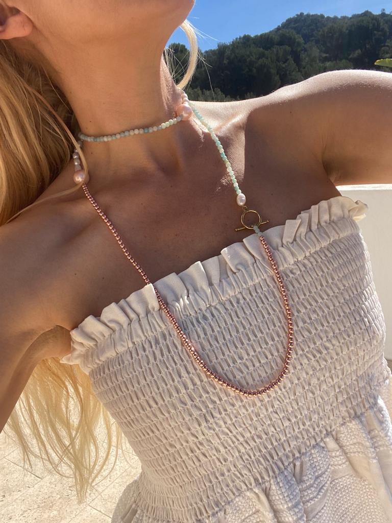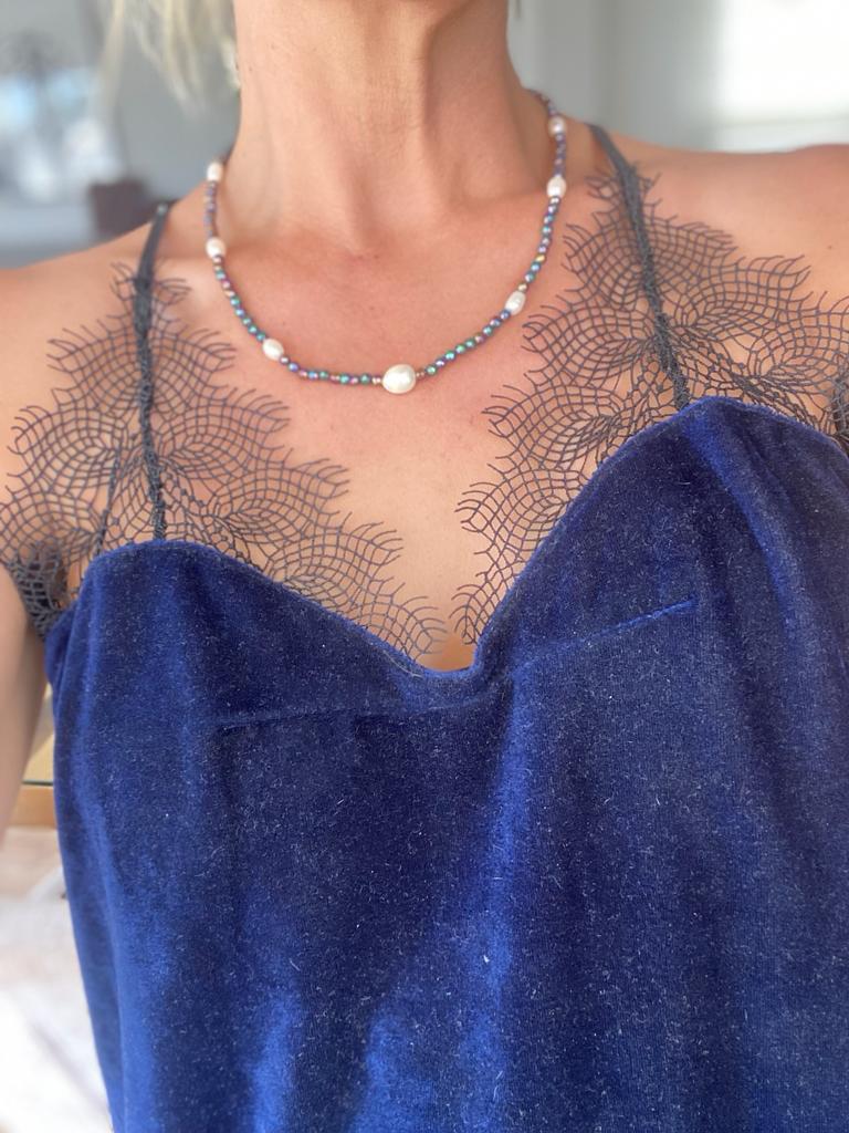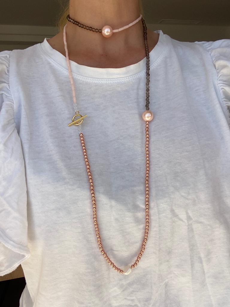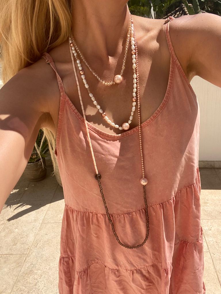 I love wearing crystals around my throat chakra, heart chakra and solar plexus .